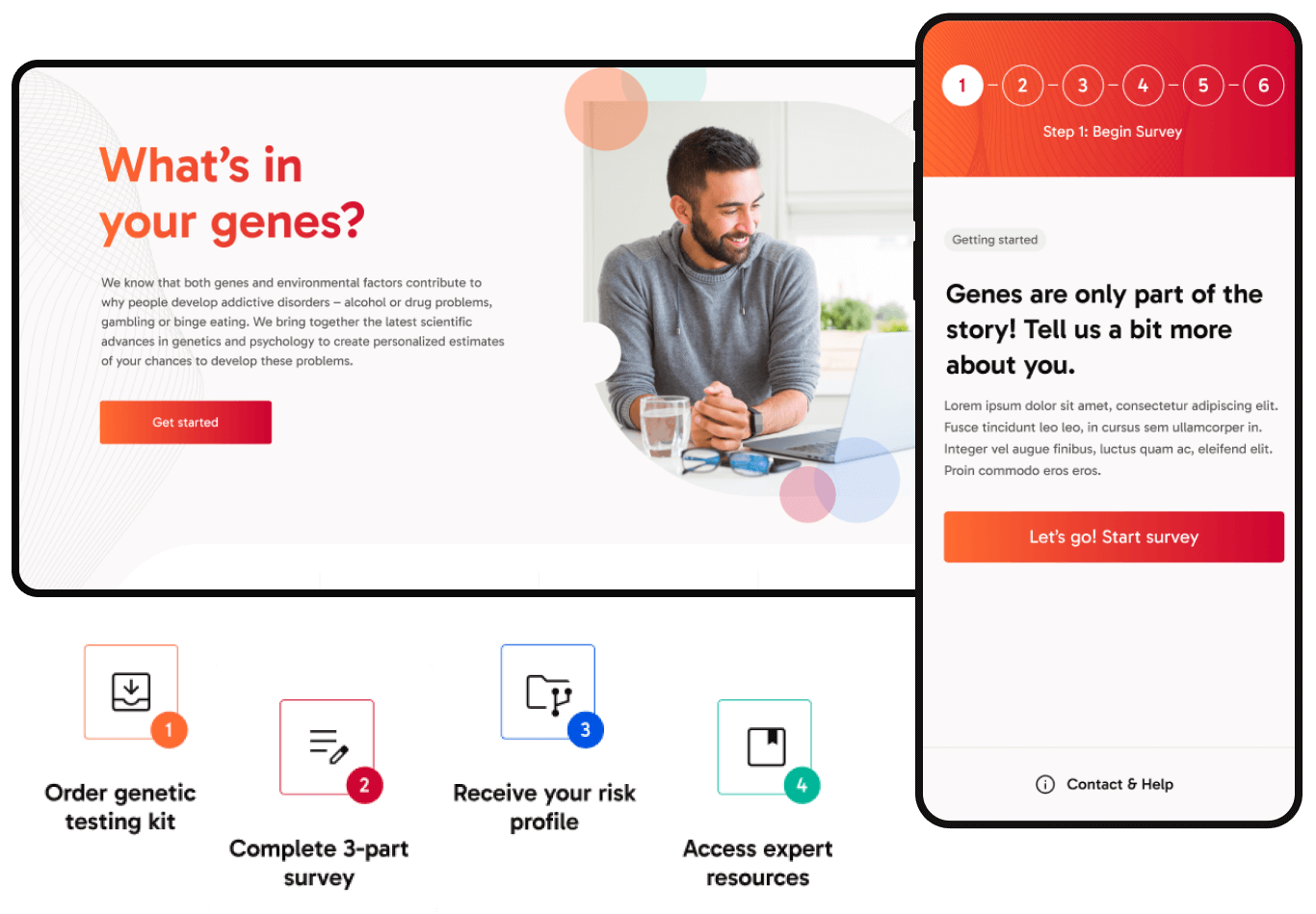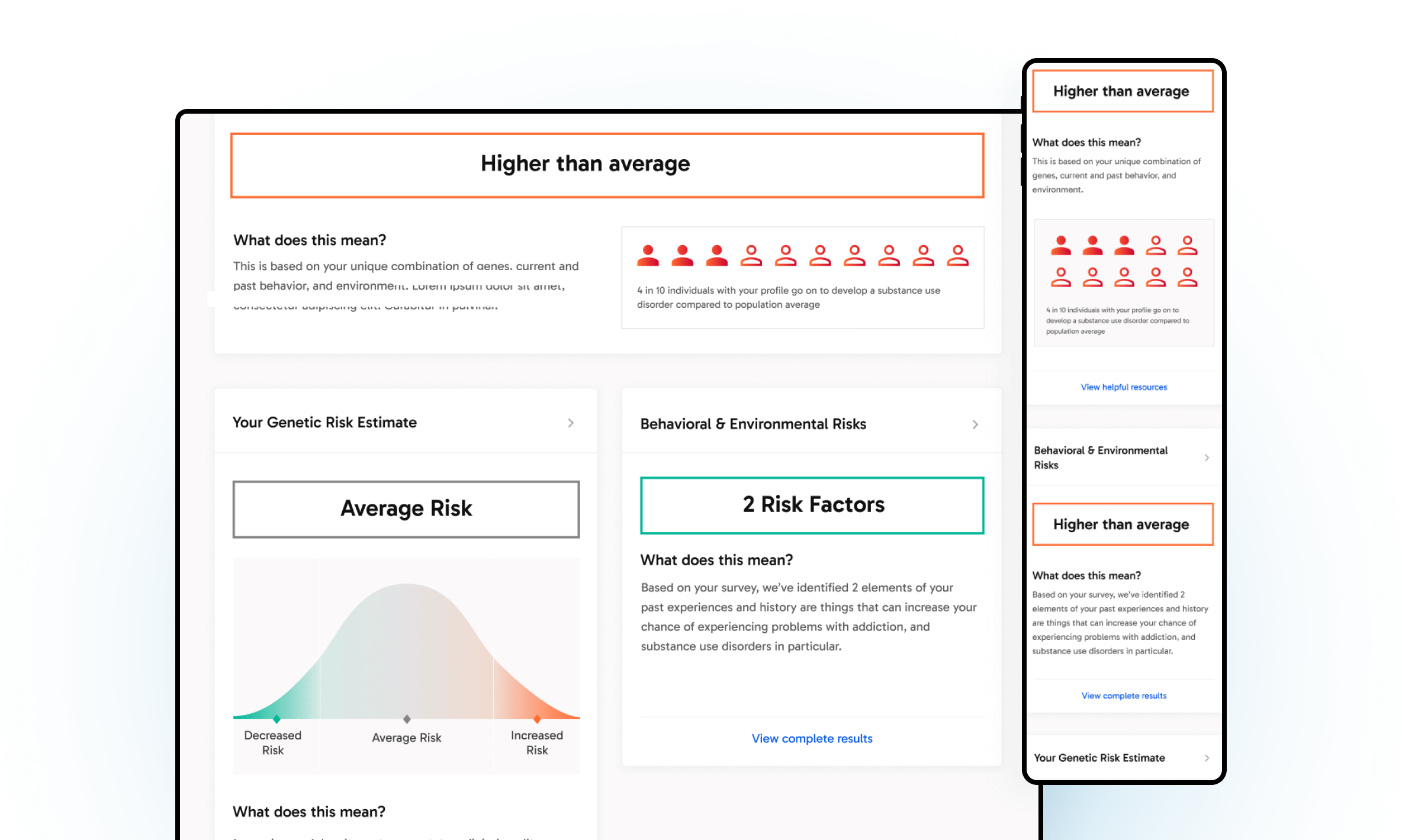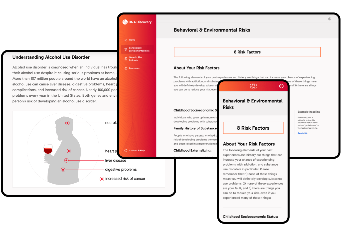Each user will be taking the Behavioral assessment as well as the Genetic test to support their overall risk score. Upon test results being scored, the user is provided personalized analysis.